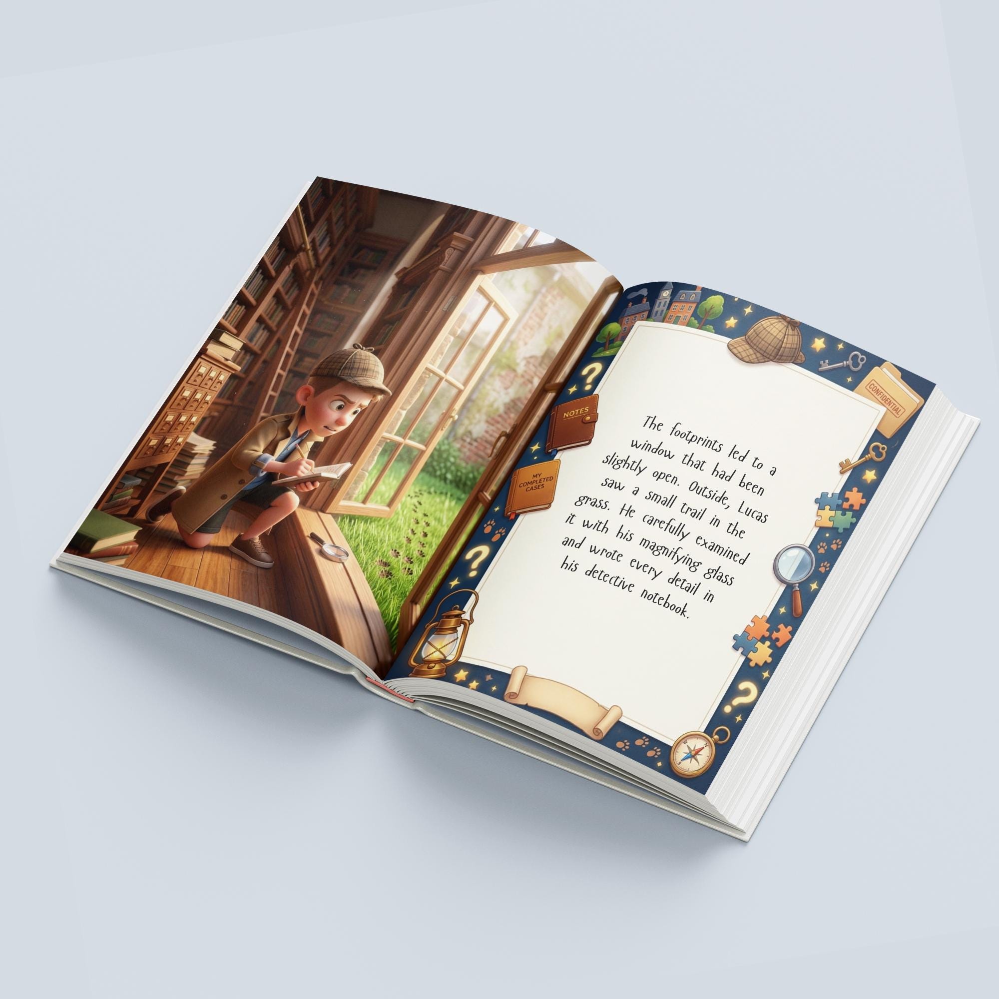 Every page is filled with mysterious clues, secret notes, clever puzzles, and exciting discoveries, all leading to the final moment when your little detective solves the mystery. 🔍✨
