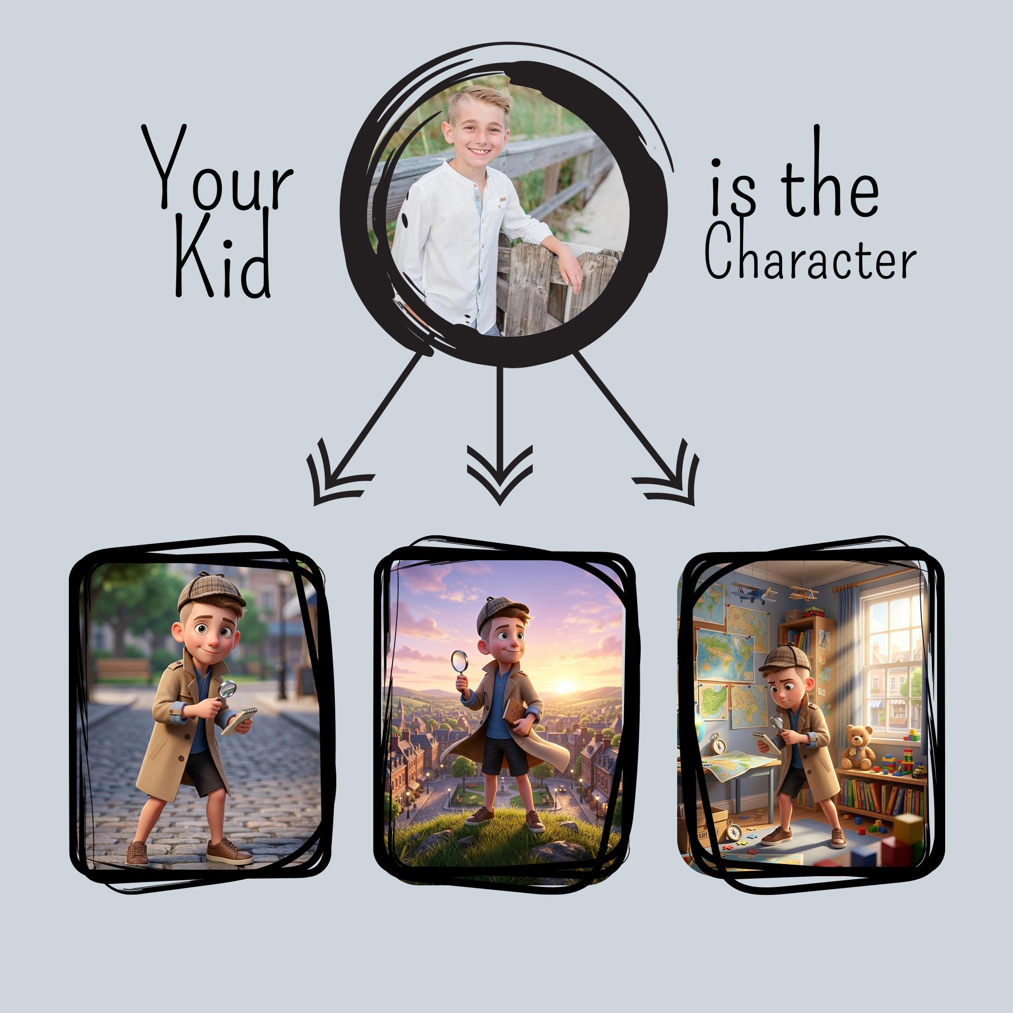 Every child who loves mysteries, puzzles, and exciting adventures will be thrilled to become the hero of their very own detective story. In this Personalized Detective Mystery Digital Book your child becomes a clever young investigator solving a mysterious case filled with hidden clues, secret notes, and surprising discoveries.